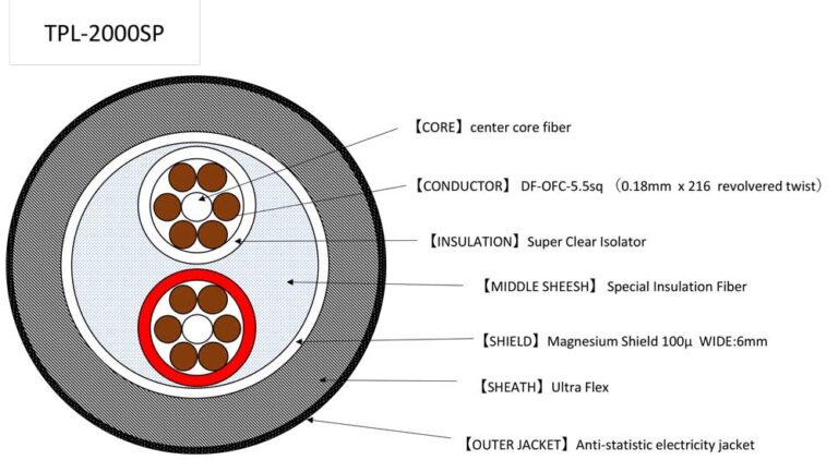 A TIGLON Premium Line 2000 Series (TPL-2000) csúcspontjaként elkészítettünk egy hangszórókábelt, a zászlóshajó modellt, amely átveszi a “TPL-2000A” tápkábel összes technológiáját, amely elnyerte a “Audio Accessory Excellence Award Grand Prix” díjat és a “MJ Az év technológiája kiválósági díj 2019-ben és 2020-ban. Ez a zászlóshajó modell átveszi a “TPL-2000A” tápkábel és a “TPL-2000RX” vonali kábel összes technológiáját, amely 2019-ben és 2020-ban elnyerte a “Audio Accessory Excellence Award Grand Prix” és “MJ Technology of the Year Excellence Award” díjat. A mártott formájú oxigénmentes rezet (DF-OCFC), amelyről azt mondják, hogy csodálatos vezető, egy saját tervezésű revolverszálba csavarják, és egy “magnéziumpajzsot, egy világszerte szabadalmaztatott technológiát alkalmaznak a szerkezetre. A külső köpeny a légiközlekedési iparban használt, antisztatikus kezeléssel kezelt speciális külső csőből készült, és a “HSE Grande”-vel, az eredeti égési sérülésünk fejlett változatával van hangolvaa 2000SP-re újonnan bevezetett technológiában. A “Advanced Magnesium Filter (AMF)”, egy szabadalmaztatott technológia, amely erősen elnyomja a kábel oldalirányú és függőleges rezgését, valamint a “Super Clear Isolator”, egy speciális szigetelő, a hűséges hangtér és a magas csendérzet elérésére szolgál. A kábel magnéziumból készült.